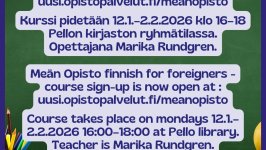 Lue uutinenMeän Opiston suomea maahamuuttajille -kurssin ilmoittautuminen on auki Opiston verkkokaupassa:...