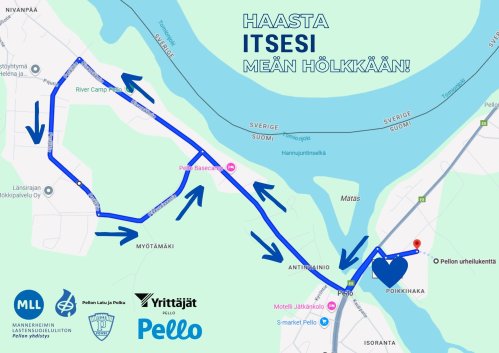 Meän hölkän lähtö Ponnen urheilukentältä. Matka 5 km Pellon kylän ympäristössä. Tapahtuma on maksuton ja avoin kaikille, ikään tai kuntoon katsomatta. Voit kiertää 5 kilometrin lenkkireitin vaikkapa hölkkäillen, kävellen tai lastenrattaiden kanssa nautiskellen. Kyseessä ei siis ole kilpailu, vaan koko kunnan yhteinen ulkoilutapahtuma, jossa lenkkeilytyyli on vapaa – kunhan vain muistat mukaan hyvän mielen ja rennon asenteen!