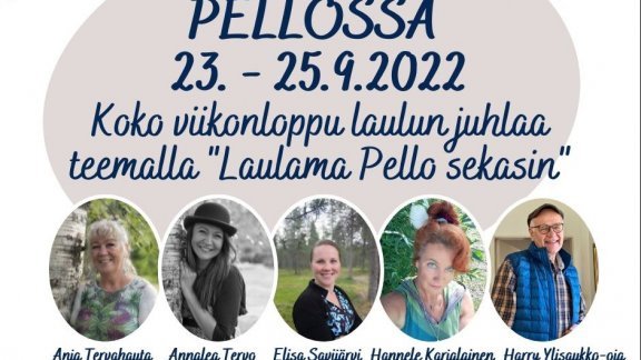 16.09.2022 Laulupörröt Pellossa 23.-25.09.2022 Laulupörröt laulavat jälleen lähes 2 vuorokauden ajan "Pelloa sekaisin" kuten Pörröjen motto kuuluu. On konsertteja, yritysvierailuja, kirkossa laulua, yhteislaulua; karaokelaulukisaa, levyn julkkaria..... hulvatonta... Lue uutinen
