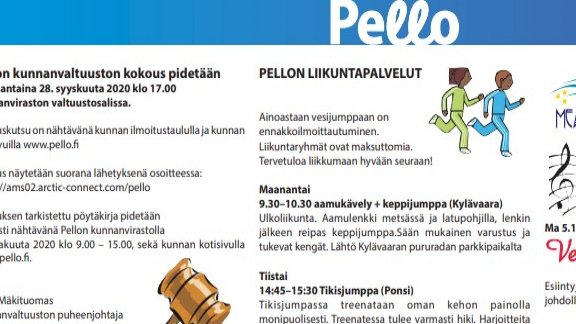 24.09.2020 Kuntatiedotteet Pellon nettisivuilla Pellon uusia nettisivuja on otettu käyttöön ja testattu kuluvan viikon aikana. Uudesta sivustosta otetaan mielellään palautetta vastaan vaikkapa palautelomakkeen kautta. Sivustoa kehitetään edelleen. Kerran... Lue uutinen