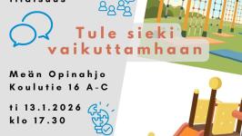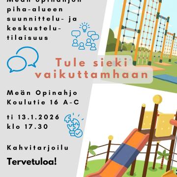 Tule sieki vaikuttamhaan Meän Opinahjon piha-alueen suunnitteluun! Kaikille avoin suunnittelu- ja keskustelutilaisuus Meän Opinahjolla (Koulutie 16...