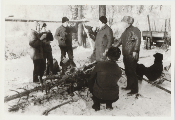 68. Kaksi miestä, poika ja nainen heinähommissa
