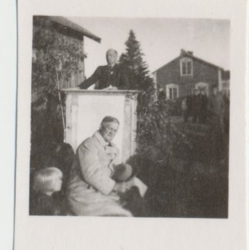 54. Porukkaa talon pihalla