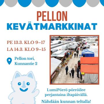Pellon kevätmarkkinat tulee taas! Markkinat pe 13.3. klo 9-17 ja la 14.3. klo 9-15 Pellon torilla osoitteessa Kunnantie 2. Tule porisemaan kunnan...
