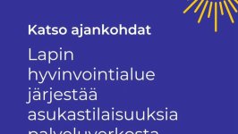 Lapin hyvinvointialue tiedottaa: Lapin hyvinvointialue järjestää marraskuussa asukastilaisuuksia eri puolilla Lappia. Tilaisuuksissa kerromme alustavista ehdotuksista palveluverkkoon. Tavoitteena on kuulla...